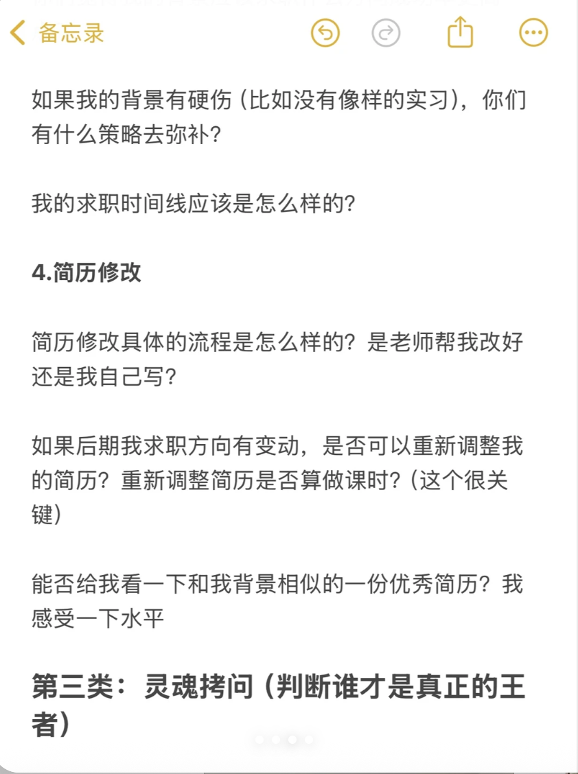 她还提到自己当年留学申请时被坑过一次,所以这次找求职中介直接练出了“1000个心眼子”,最重要的就是:提前做功课 + 带着问题去问,别让中介牵着鼻子走、打乱自己的求职节奏。她最后之所以选择现在这家,也是因为对方的回答让她感觉“专业在线 + 比较实诚,不绕弯”。