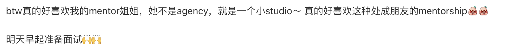btw真的好喜欢我的mentor姐姐,她不是agency,就是一个小studio~ 真的好喜欢这种处成朋友的mentorship