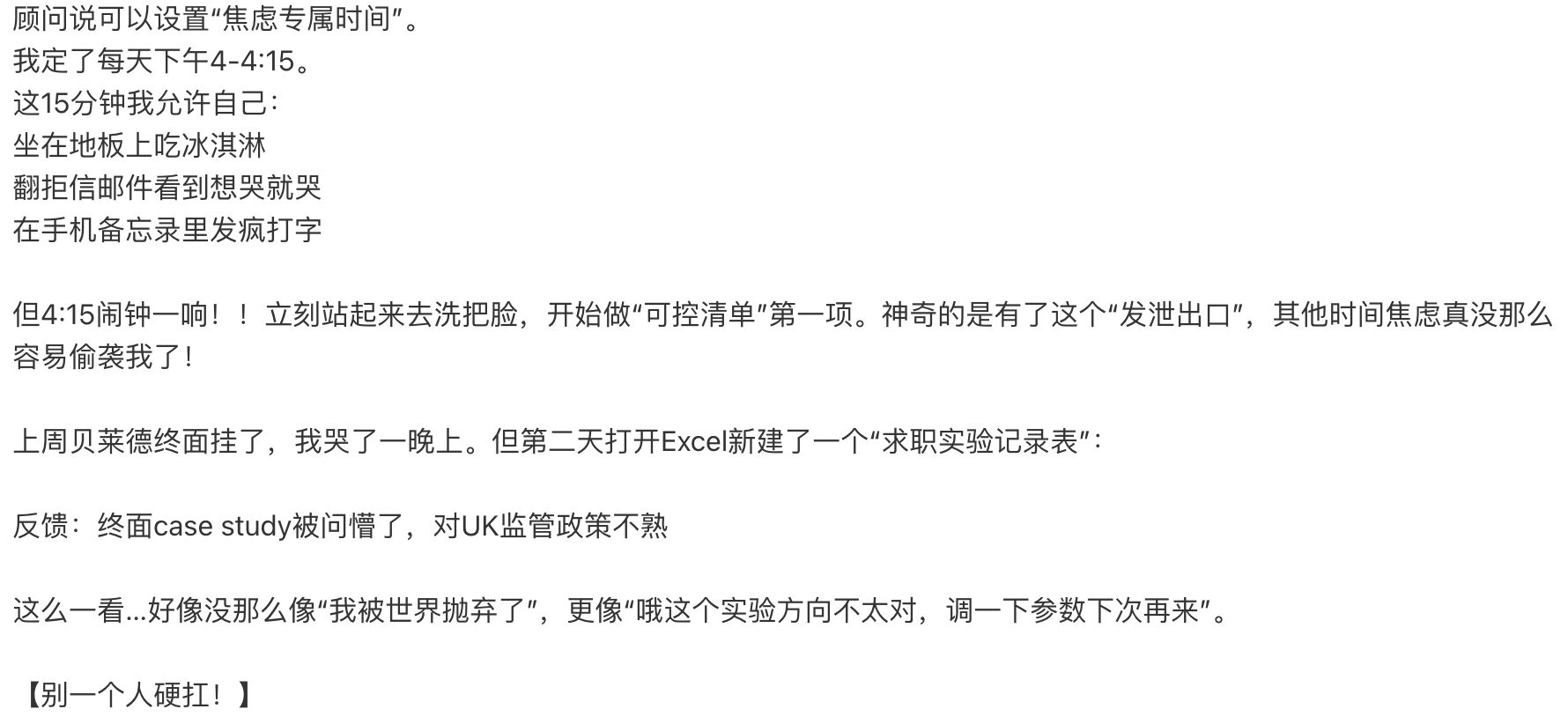但4:15闹钟一响!!立刻站起来去洗把脸,开始做“可控清单”第一项。神奇的是有了这个“发泄出口”,其他时间焦虑真没那么容易偷袭我了!
